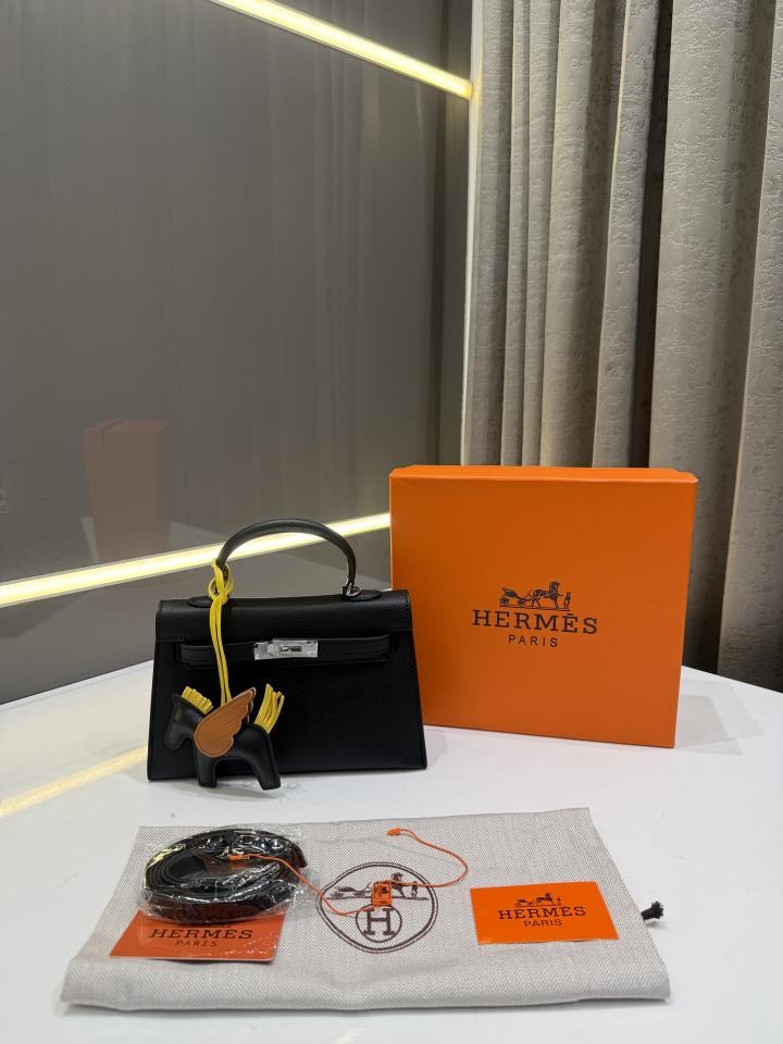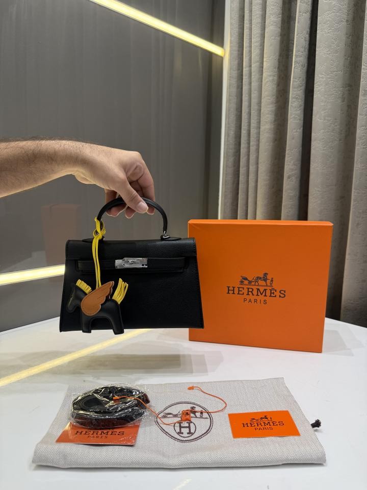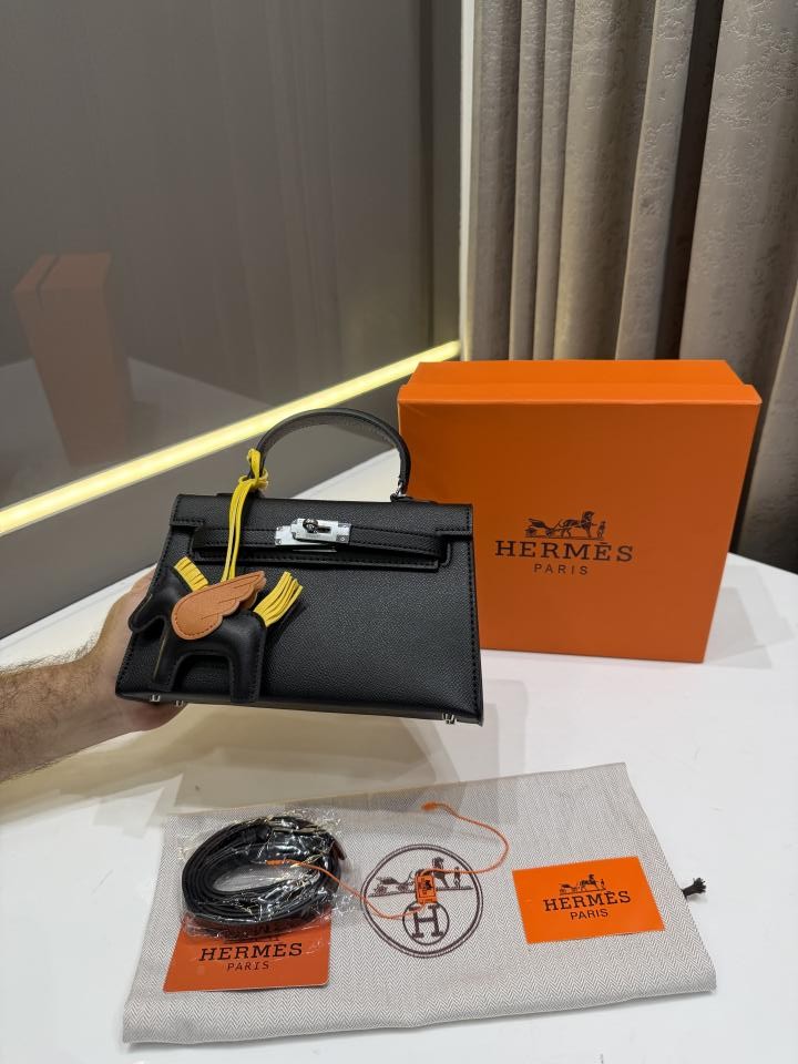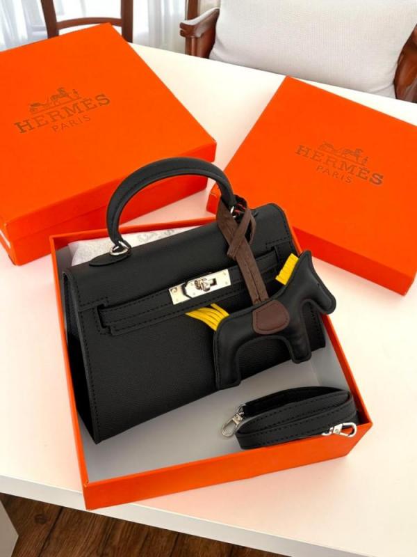 HERME.S KELLY ADORNED WITH HORSE SHAPED PREMIUM LEATHER HAND BAG WITH OG BOX